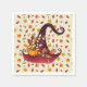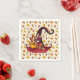 Die zauberhaften, saisonalen Party-Servietten verfügen über einen dunkelroten Hexenhut mit Kürbis und Herbstblättern auf einem Hintergrund aus Herbst