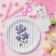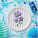 Aquarellfarbene Veilchen mit gestreiftem Teller sind ideal für Geburtstagsfeiern, Babydusche, Brautparty oder Party.