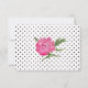 Stilvolle und romantische Hochzeitskarte mit weißem Hintergrund, mit einem winzigen schwarzen Polka-Punktmuster, ganz unten und auf der Rückseite der Karte. Schöne Aquarellkunst aus rosa Blume, schmückt die untere Mitte der Vorderseite. Personalisieren Sie den schwarzen Text für Ihren besonderen Tag. Matching Produkte sind erhältlich.