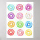 Aquarellfarben pastellfarben druckt der Aquarellmaler Cheng Jing. Sprinkle Donuts, blaue, rosa und lila Donuts, Glaste Donuts, Eistücher.