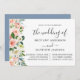 Moderne Minimalistische, einfache und doch elegante Kalligrafie Script rosa Blush Floral Wedding Einladungskarte. Die Blume sind mit rosa Rosen, weißen Blume und botanischem Grün gestaltet. Dusty Blue Back.