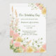 Schönes rosa und goldfarbenes Blumenmuster mit grüner Schrift und Typografie in dieser eleganten Hochzeitseinladung.