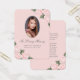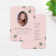 Elegante rosa und silberne Gedächtniskarte/Begräbniskarte mit einem Foto, das mit blütenrosa Aquarellfarben-Rose geschmückt ist und auf schlichtem, blütenfarbenem Hintergrund Blume des Babys trägt.