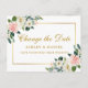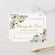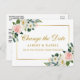 Moderne Elegante Wasserfarbe Rosa Blütenblüte verändern Die Postkarte für die Hochzeit bietet rosa Rosen, weiße Blume, Grünpflanzen und einen goldenen Rahmen.