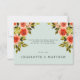 Romantische und moderne Hochzeitskarte mit roten Aquarellfarben und grünem Blattwerk auf einem Minzhintergrund.