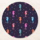 Aquarellfarben-Seepferde auf Navy Blue Pattern Runder Pappuntersetzer