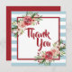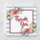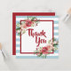 Moderne Weihnachten Dankeschön an das Kartendesign mit Aquarellfarben-Winterfloralen und blauem Streifenhintergrund.