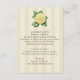 Vergewissern Sie sich, dass Ihre Gäste alle wichtigen Details mit dem frischen und lebendigen Charme dieser rustikalen Wedding Yellow Lemons Citrus Watercolor Umfassungskarte haben. Dieses botanische Design mit wunderschönen Aquarellfarben und üppigen grünen Blätter bringt Ihnen eine Touch mediterraner Eleganz in Ihre Hochzeit. Diese Karte eignet sich ideal für rustikale, frühlings-, sommer- oder garten-inspiriert Feiern und vereint natürliche Schönheit mit zeitloser Eleganz. Diese Karte ist ideal für den Austausch von zusätzlichen Informationen wie Unterkunft, Transport, Kleiderordnung oder Ihre Hochzeitswebsite und ergänzt Ihre Einladungssuite. Mit anpassbarem Text fügt es Ihrem besonderen Tag Stil und Komfort hinzu.