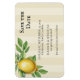Frisch und lebendig, diese rustikale Zitronenschale Citrus Watercolor Save the Date Magnet bietet sonnige gelbe Zitronen und üppige grüne Blätter für eine Touch von mediterranem Charme. Dieses individuell gestaltbare Design eignet sich ideal für Hochzeiten in der Natur, im Frühling, im Sommer oder im Garten und eignet sich hervorragend für die Präsentation auf Kühlschränken. Es behalte Ihnen Ihren Tag ganz nach Ihren Wünschen.