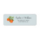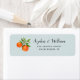 Auf dem eleganten Adressetikett finden Sie Aquarellbilder von Orangenfrüchten und Blätter auf einem blassfarbenen Aquaband. Matching Hochzeit Einladung zur Verfügung.