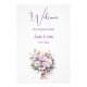 Dieses Begrüßungsschild zeigt ein gemaltes Aquarellbouquet mit atemberaubendem kalligraphischen Schriftart und einer modernen Schrift.