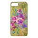 Ein Blume-Bouquet in Rosa, lila, orange, rot, aquamarin und mehr auf einem rustikalen grünen Hintergrund, der mit goldenem Glitzer verstaubt ist, schmückt dieses Gehäuse.