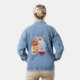 Hier kommt die Bride Skript-Blume Hochzeit Denim Jacke mit Blume in Rosa und Orange mit Blätter. Eine perfekte Country-schicke Denim-Jacke für Braut.