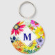 Aquarellfarbene Blume Mit Monogramm Schlüsselanhänger