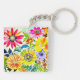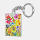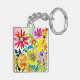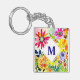 Aquarellfarbene Blume Mit Monogramm Schlüsselanhänger