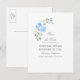Romantische elegante Save the Date Postkarten mit Aquarellbildern und Blätter. Pastellfarben blau und grau... Anemonen, Pfannenbäume, Rose und andere Blume und Äste. Niedlich trendig und einfach Save the Date Postkarte.