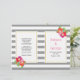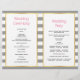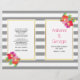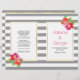 Hervorragende rosa und lila tropische Aquarellfarben-Blume und graue, weiße Streifen gefaltet Hochzeitsfeier und Party-Programm. Schöne tropische Blume schmücken dieses elegante und moderne blumengeschmückte Hochzeitsdesign. Ihr Text wird auf weißen Rahmen mit goldenen Konturen platziert. Wählen Sie das Wertpapier aus, wenn es sich gut faltet, und falten Sie es manuell in die Mitte.