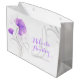Geben Sie Ihre Hochzeitsgeschenke in dieser speziellen Hochzeitsgeschenktasche. Ideal, um Ihre Hochzeitsgeschenke mit einer personalisierten Touch zu Ihrer Hochzeitsfeier oder wenn Sie der Braut und dem Bräutigam ein Geschenk machen. Eine Aquarelltasche Wildblume wirft eine Geschenktasche in Weiß, lila und Grau. Entspricht einer Reihe anderer Hochzeitsprodukte im Wasserfarben Wildblume Swirl-Sortiment. Passen Sie diese Geschenktüten mit Ihren Braut- und Vorzimmernamen auf beiden Seiten an. Original Aquarellkunst und Design von Sarah Trett.