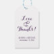 Elegante Hochzeit Gunst Liebe & dank Geschenkmarke mit lila Pflaumenviolett und rot-rosa-Peonies Bouquet und individuellem Text. Personalisieren Sie es mit den Namen der Braut und des Bräutigams und dem Hochzeitstag!