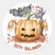 Aquarellfarbene Kürbislaterne und Fledermaus Runder Aufkleber