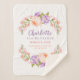 Eine wunderschöne Babydecke mit botanischem Blumenkranz in hübschen Pastelltönen in Rosa und lila. Personalisieren Sie das Design mit Babynamen, Monogramm, Geburts- und Geburtsstatistiken oder anderem Text. Verwenden Sie die Entwurfswerkzeuge, um eine beliebige Hintergrundfarbe auszuwählen, Fotos hinzuzufügen, Textfarben und Schriftart zu ändern, um ein einzigartiges Design zu erstellen. Individuell gestaltete Decken machen neue Eltern zu einem großartigen Geschenk!
