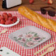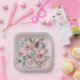 Aquarellfarbene rosa Blume auf Rosa Pappteller