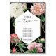 Ein wunderschönes Aquarell-Rosa und Weiße Pfannkuchen Blume Hochzeitsdesign mit goldenem geometrischem Rahmen auf schwarzem Hintergrund. Ein einzigartiges Design, das Vintage botanische Tornfloralen in Rosa und Weiß verwendet. Ein elegantes, rosa-weiße Pfannkuchen mit Blumenmuster und einem Hauch von Grün. Eine schicke goldene geometrische Rahmen Hochzeitsgestaltung mit modernen Elementen. Auch die passenden Hochzeitseinladungen und andere Schreibwaren sind verfügbar. Passen Sie die Anzahl an und erwerben Sie jede Tabellennummer individuell, je nachdem, wie viele Tischnummern Sie benötigen.