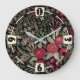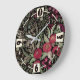 Aquarellfarbene Rose auf schwarzem Hintergrund, Aq Große Wanduhr