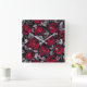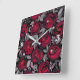 Aquarellfarbene Rose auf schwarzem Hintergrund, Aq Quadratische Wanduhr