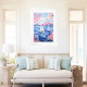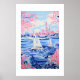 Aquarellfarbene Segelboote Blaue Gewässer Rosa Blü Poster