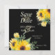 Aquarellfarbene Sonnenblumen auf schwarzer Hochzei Save The Date