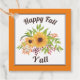 Wasserfarbene Sonnenblumen und Beeren Orange Happy Fall Y'all Bevorzugung Tag. Es ist mit gelben Aquarellfarben-Sonnenblumen mit grünen Blätter, Herbstlauben und Beeren ausgestattet. Der Text lautet "Happy fall Y'all". Es ist ein orangefarbener Rand.