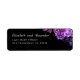 Schwarzes Hochzeitslabel mit violetten Aquarellblumen.