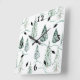 Aquarellfarbene Weihnachtsbäume. Winterwald. Quadratische Wanduhr