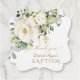 Einzigartiges, weißes Blume Taufbecken-Design. Es zeichnet sich durch zarte, weiße Aquarellfarben-Blume, Imitate goldenes Schleuderkreuz, prächtige Schriftart auf weißem Hintergrund aus. Verwenden Sie das Tool Personalisieren, um Ihre Informationen hinzuzufügen. Für passende Artikel besuchen Sie bitte meine Charming Religious Event Collection.
