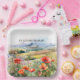Eine elegante Beerdigung Gedenkfeier mit Lebensgestaltung mit Aquarelllandschaft und Wildblumen.
