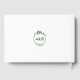 Dieses atemberaubende Gästebuchdesign besticht durch eine reizvolle Aquarelllandschaft aus Wildblumen in lila und blauen Farbtönen, die durch bläulich-grüne Blätter unterstrichen wird und den oberen Teil elegant schmückt. Die Namen der Paare und das Hochzeitsdatum sind ebenfalls im Design enthalten. Die Rückseite des Buches zeigt die Initialen des Paares in einem runden Rahmen mit zusätzlichen Akzenten der Wildblume. Dieses Gästebuch ist perfekt für eine Hochzeit im Frühjahr und wird sicherlich noch viele Jahre lang ein beliebter Treffpunkt sein.