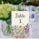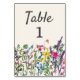 Aquarellfarbene Wildblumen Hochzeitsempfang Tischnummer