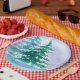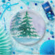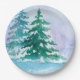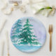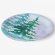 Eine wunderschöne Aquarelllandschaft mit zwei schneebedeckten Pinienbäumen. Diese robusten Teller können das ganze Jahr über in Ihrer Zuhause oder im Büro eingesetzt werden.