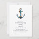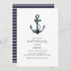 Wasserfarbene nautische Ankereinladungen für einen Junggeselinnen-Abschied, der in der Koordination der marineblau Farbe gedruckt ist. Passen Sie Ihre Party-Informationen an. Die Rückseite der Einladung ist eine nautische Marine blau-weiß Streifen.