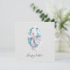 Hübsche Aquarellblau dekorierte Ei, verpackt in Band auf pastellgrauem Hintergrund. Anpassbarer Happy Oaster Text im modernen Script-Schriftart