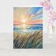 Hübscher Sonnenaufgang im Wasser über den Ozean mit Strandrasen zum Beileid. Der Text ist bearbeitbar.