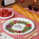 Handgemalte Weihnachts-Teller aus grün und rot-blumengeschmücktem Weihnachtsgebäck aus dem Party.