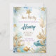 Dieses bezaubernde Design besticht durch traumhafte Aquarellbilder einer Unterwasserszene mit glänzenden goldenen Akzenten. Diese Einladung, die perfekt für eine zauberhafte Feier geeignet ist, erweckt die Schönheit des Ozeans mit zarten aquatischen Elementen und schafft so ein skurriles und elegantes Ambiente. Ideal für diejenigen, die eine einzigartige und charmante Einladung, die Wellen zu jeder Geburtstagsparty.