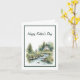 Diese Vatertagskarte zeigt ein typisches Aquarellbild eines Fischers neben einem Bach, umgeben von einer dunkelgrünen Grenze. Die Stimmung glücklicher Vater's Day ist oben zentriert. Sowohl der Gruß auf der Vorderseite als auch die Nachricht im Inneren können nach Bedarf angepasst werden.