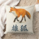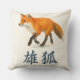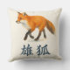 Aquarellfuchs mit japanischem Kanji Kissen