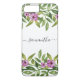 Handgeschriebene Skriptkalligraphie und Aquarellgarland lila Blütenfeder iPhone 8 Plus/7 Plus Case. Der obere und der untere Teil sind mit einer Grünanlage mit violetten Blumen bedeckt.