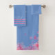 Aquarellgarten Blume Blau Rosa Name Badhandtuch Set