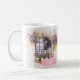 Tasse mit der schönen Aquarellmalerei eines Fenstergartens mit bunten Blume. Personalisiert mit Ihrem eigenen Text.