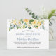 Die moderne elegante Watercolor Gelbe Brautparty Luncheon Einladungskarte beinhaltet Gelbe Rosen, weiße Blume und botanische Blätter. Trendy Kalligrafie Script. Dusty Blue Back.